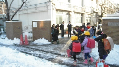 昨日の天気で、今朝は東京が白銀の世界となりました。ただ、朝はアイスバーンの世界となり、登校はしばらく苦労が続きます。今日から瀬田小、二子玉川小、瀬田中による3校合同あいさつ運動です。朝早くから中学生が来て代表委員と一緒に正門で元気よくあいさつしてくれました。学校から遠い子はやっとのおもいで学校に到着し、元気なあいさつにほっとしたことでしょう。