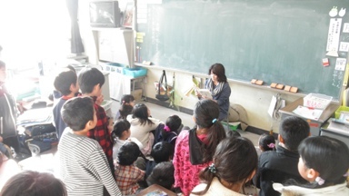朝読書の時間に読み聞かせをしていただき、ありがとうございます。絵本の絵をしっかりと見せ、子どもに想像させながら読んでいただいています。