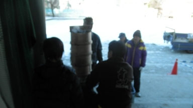 もちつきの最初は、蒸し上げから始めます。コークスを使って寒い中ずっと校庭で行います。火加減がおもちの出来具合に大きく左右する重要な仕事です。