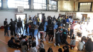 体育館は、子どもたちに楽しんでもらおうと集まっていただいた地域の皆さん、おやじの会、親瀬会、PTAの皆さんのいっぱいです。そこに子どもたちが加わるとさらに人の密度は高くなります。