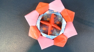 寿会の皆さんから1年の子どもたちへと、折り紙3枚を使った作った手作りコマをプレゼントしていただきました。一つ作るだけでも大変なこのコマは、回すととてもすてきな模様になります。