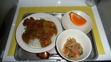 、コンニャクサラダ、福神漬け、デコポン、牛乳