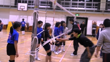 卒業を前にして、瀬田JVCと先生チームがバレーボールのゲームをしました。圧倒的な身長差がある対戦ですが、ボール慣れしていない先生チームと互角の勝負です。シーソーゲームの連続でした。ゲーム終了後、子どもたちの満足そうな表情が印象的でした。