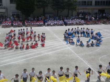 ディズニーの曲にあわせ、元気いっぱいに表現しました。(1年)