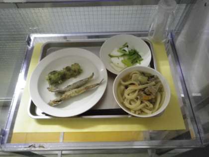 ・煮込みうどん ・牛乳 ・ししゃものからあげ