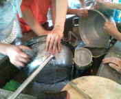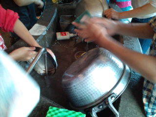 一斉に、片付けに入りました。鍋の焦げも丁寧に取ります。