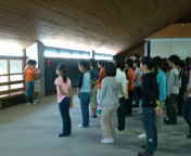 2日目の朝です。5時頃から、声が聞こえてました。全員元気です。朝の会で、ラジオ体操が終わり、部屋に、戻ります。