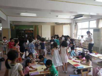 終わった子は、PTAボランティアの方に○をつけていただきます。