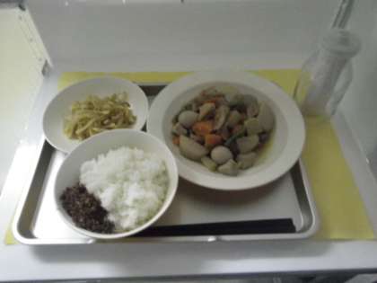 ・鶏肉と里芋のうま煮 ・もやしのカレーじょうゆかけ