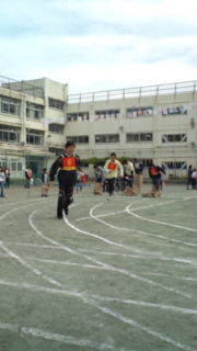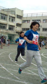 大人の競技も、白熱しています。本校の学校運営委員長も、教員も、頑張っています。