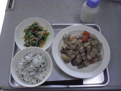 ・鶏肉と里芋のうま煮 ・野菜のごまだれかけ