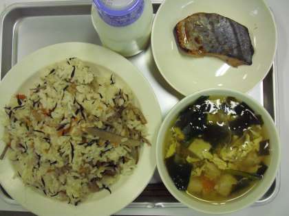 ひじきご飯 牛乳 さわらの照り焼き かきたま汁