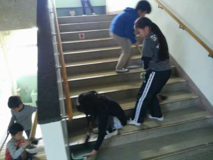 長い廊下を雑巾がけしたり、ほうきを上手に使って階段を掃き掃除したりしていました。