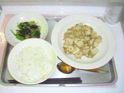 ☆麻婆豆腐を作るときは、給食室では豆腐を加熱しすぎないように気をつけています。豆腐を加熱しすぎると『す』が入り、食感が悪くなるからです。