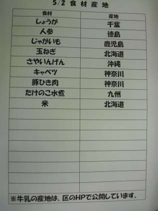 5/2(金) 給食(食材産地)