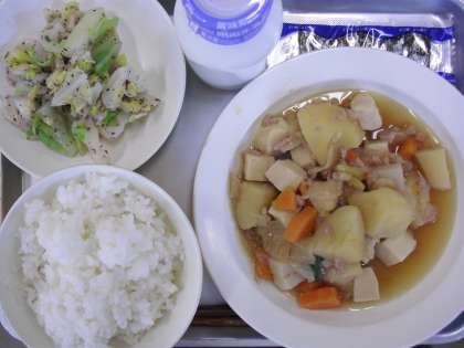 ご飯 牛乳 味付きのり 新じゃがいものそぼろ煮 野菜のゆかり和え