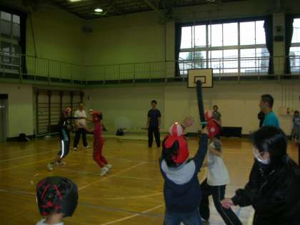 25日(日)10月のせたっち広場がありました。今回は、ソフトバレーボールとスポーツチャンバラ。少し肌寒かったため、最初の集まりは少なかったですが、次第に人数も増え、体育指導員の方々を中心に楽しく活動しました。日本ソフトバレー協会の公式審判員の方とスポーツチャンバラは、世界チャンピオンの方々がいらして指導してくださいました。スポーツチャンバラでは最後に、防具に紙風船をつけて互いにたたき割るゲームをおこない、大人も子どもも楽しめた2時間でした。せたっち広場はいろいろなスポーツが企画され体験できるすばらしい機会です。9月はユニカールというスポーツで、これも初めての体験でした。