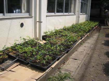 昨日、NPO法人森人プロジェクトの方とJRの方が苗1200本を本校に持ってきて下さいました。