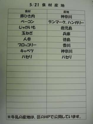 5/21(水) 給食(食材産地)