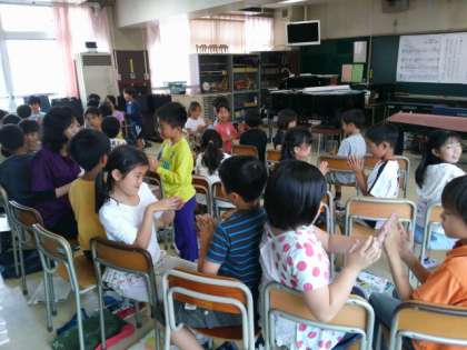 授業の終わりは和音の聞きわけゲームでした。みんなしっかりできていました。