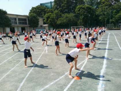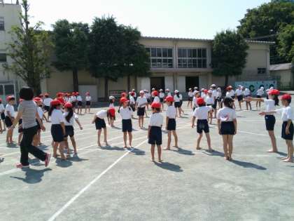 「ソーラン節」を踊っています。大きな声でかけ声をかけ、気合いが入ります。