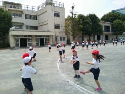 指導する先生も一生懸命、1年生にわかりやすく伝えるために汗を流していました。