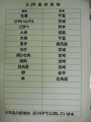 5/29(木) 給食(食材産地)