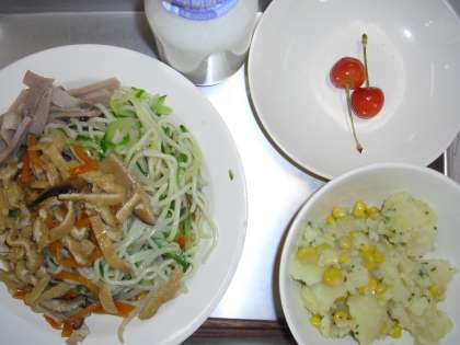 冷やし中華 牛乳 じゃがバタコーン さくらんぼ