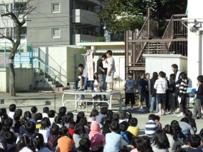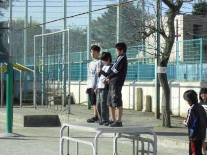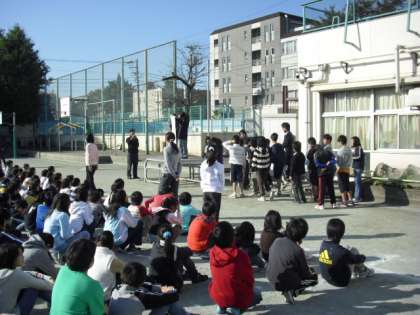 11月6日(金)の児童集会は、「委員会報告集会」でした。インフルエンザの拡散防止のため、集会活動はこの時期は校庭で行われています。集会委員会の児童の司会・進行の下、「飼育委員会」「栽培委員会」「運動委員会」「美化委員会」「代表委員会」が、日頃の活動の報告や皆さんへのお願いなどを発表しました。