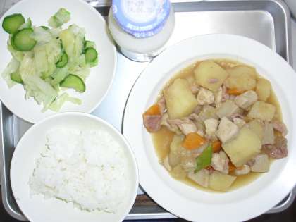 ☆今日は肉じゃがでした。少し味がうすめでしたが、みんなよく食べていました。煮物系はいつも残食が多いのですが、肉じゃがは子どもでも食べやすいようです。