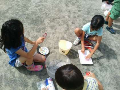 さてさて、どんなシャボン玉ができるでしょう。