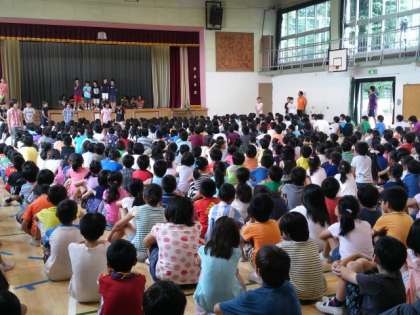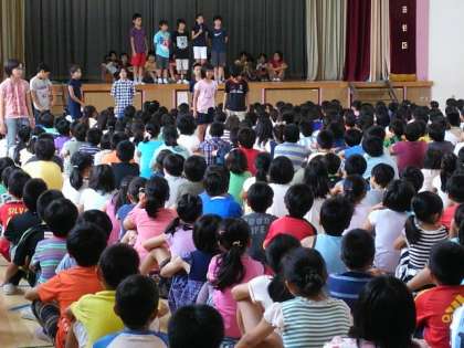 それぞれの委員会に所属する子どもたちが起立して、全校児童に顔を見せました。やりがいをもって取り組み、下級生の模範となるようがんばっています。