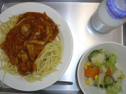 スパゲッティーペスカトーレ 牛乳 ポテト入りフレンチサラダ