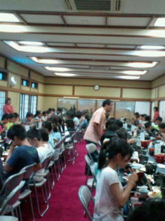 そして、夕食の時間です。挨拶当番の合図で、いただきます。湯葉など、日光名物も、出されました。