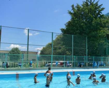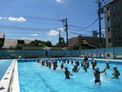 青空のもと、子どもたちはプールの気持ちよさを思う存分感じることができました。