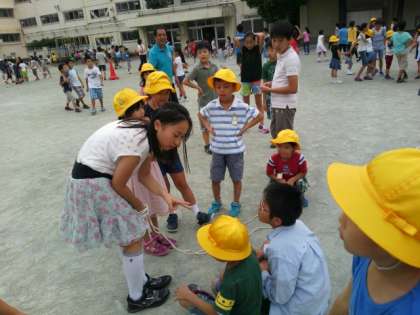 兄弟学級の子どもたち同士、グループに分かれて遊びます。