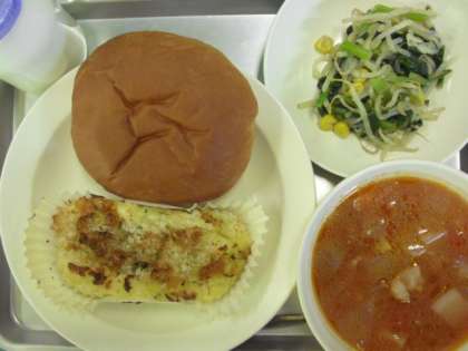 黒糖パン 牛乳 ポテトクリーム焼き 青菜のソテー ABCミネストローネ