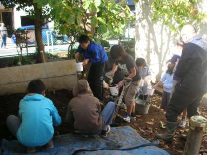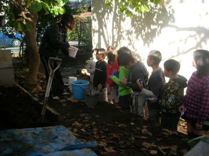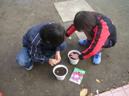 全校で取り組んでいる一鉢栽培。5年生は、11月20日(金)3校時から5校時にかけて、担任と校長先生の指導のもと、クラスごとにアネモネの種をまきました。生長が楽しみです。