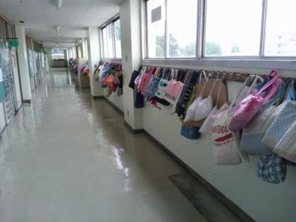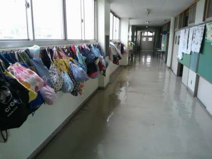 廊下の壁にかかっている子どもたちの荷物が一つも落ちていません。