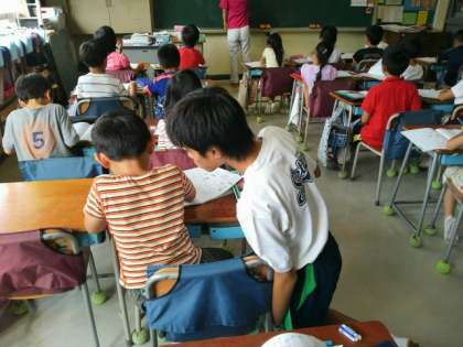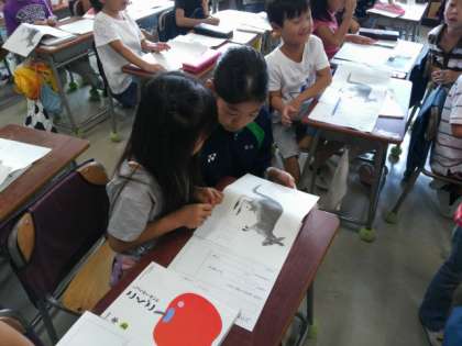 漢字の学習や国語のワークシートの学習を優しくサポートしていました。