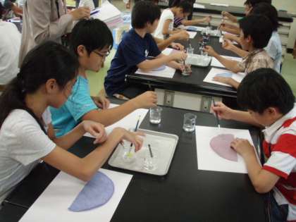 4種類の水溶液で紙に絵を描くことから始まりました。