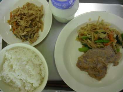 ☆今日の豚肉のみそ漬け焼きには、漬けだれにヨーグルトが入っています。ヨーグルトの乳酸が、肉の繊維を軟らかくしてくれるからです。しっかりした味付けでご飯がすすんだためか、今日はご飯の残りがとても少なかったです。