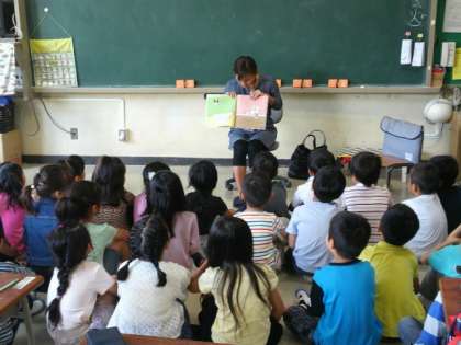 読み聞かせのボランティアの保護者の方が1年生の教室に来て下さいました。