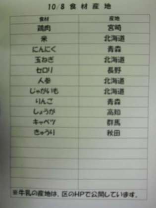 10/8(水) 給食(食材産地)