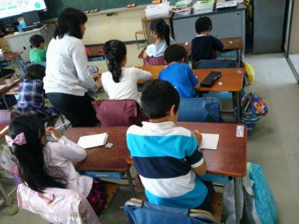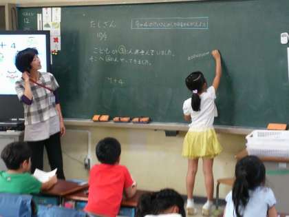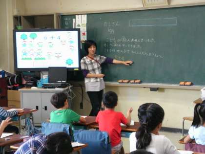 10の固まりを作って考えています。みんなから拍手が起きました。
