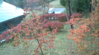 しかし、宿舎の周りは、すっかり、紅葉しています。バスからも、たわわに実った柿の実や、リンゴの赤い実を眺めながら来ました。