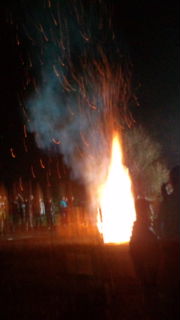 その後、延期になっていたキャンプファイヤーです。寒さ対策をしてきましたが、思いのほか暖かく、子どもたちの熱気と、ファイヤーが真っ直ぐに夜空を照らしているのとで、一段と熱いです!!