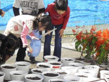 1年生は、前期の朝顔につづき、チュリーップを植えました。