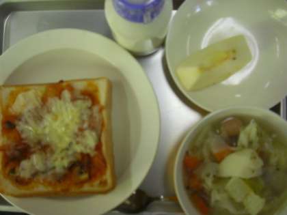 ピザトースト 牛乳 ポトフ りんご
