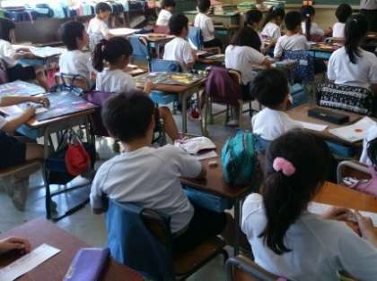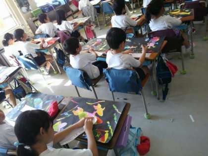 どこにどのように貼るかの指示をしっかり聞いてみんな真剣です。